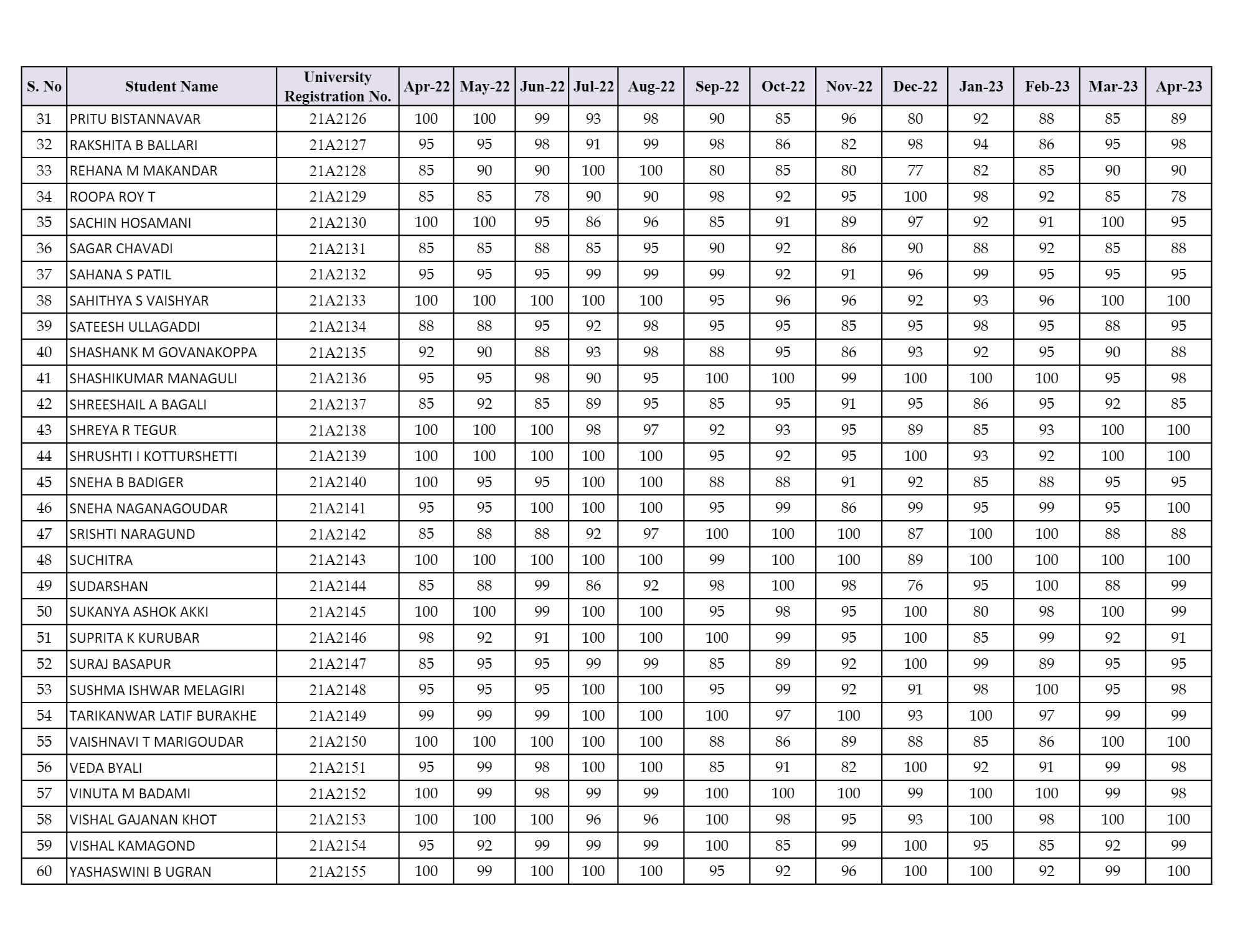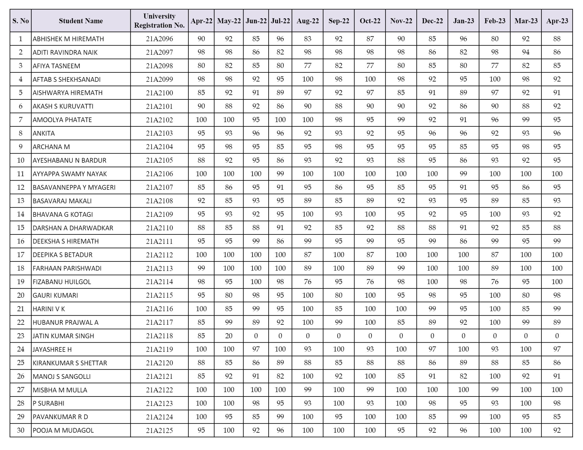 2021–22 Batch Students Attendance