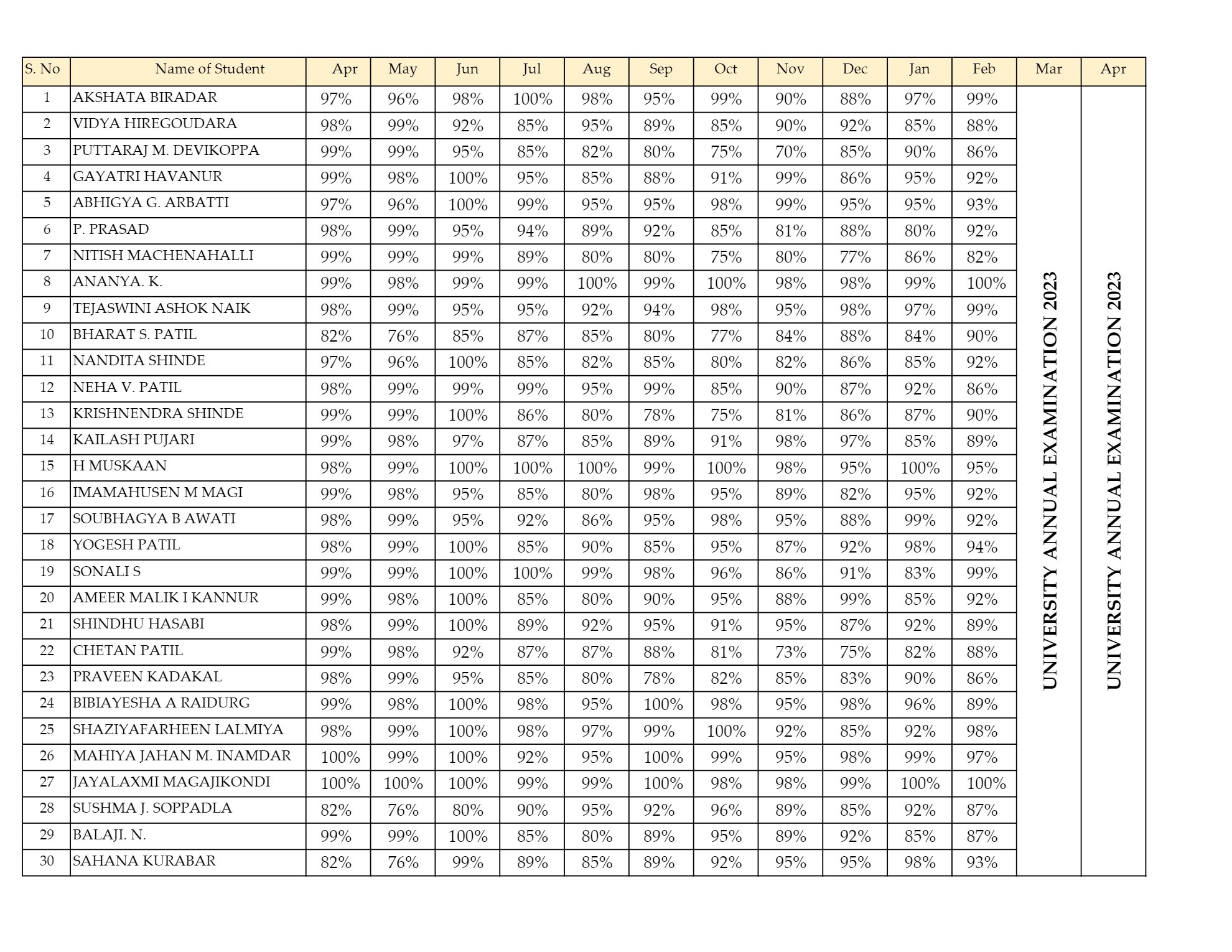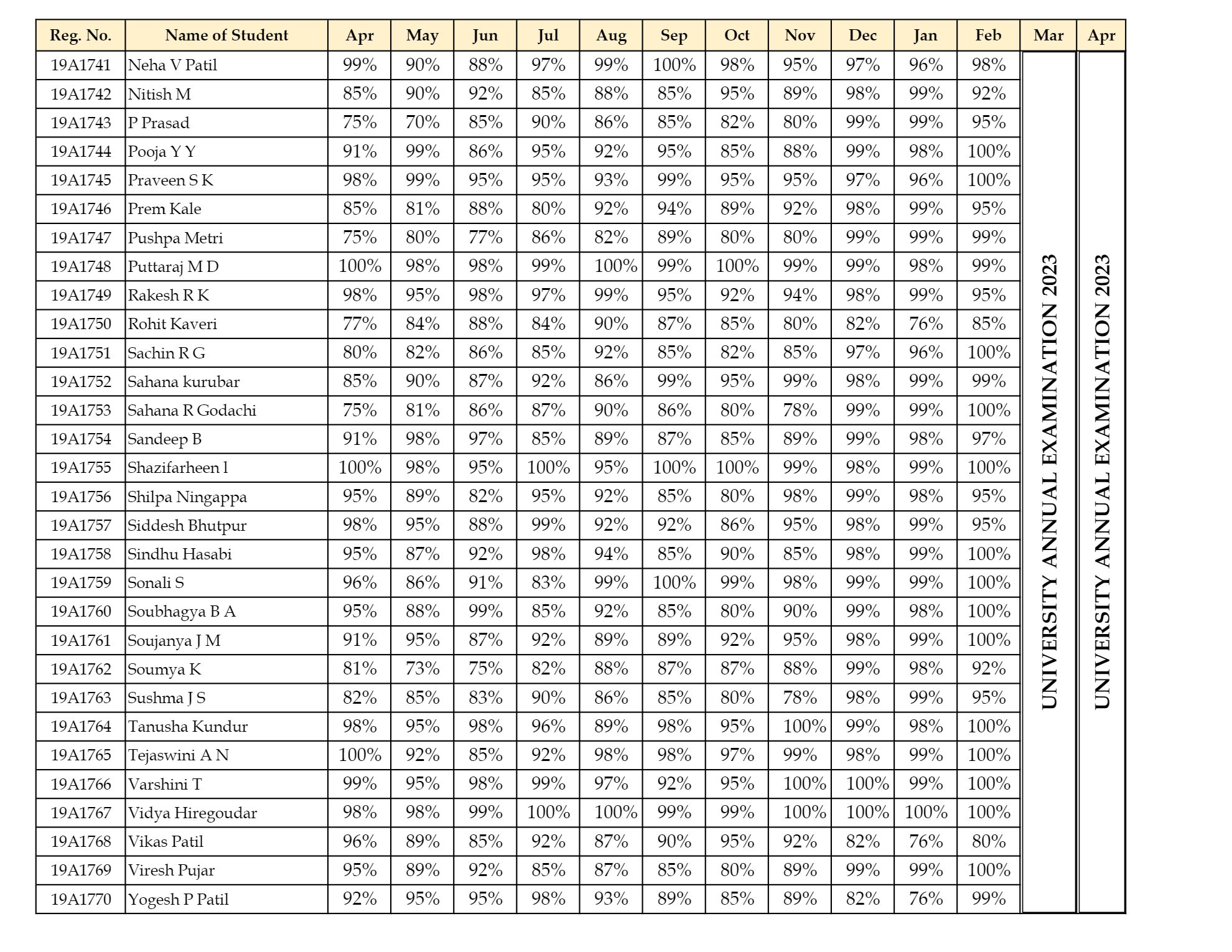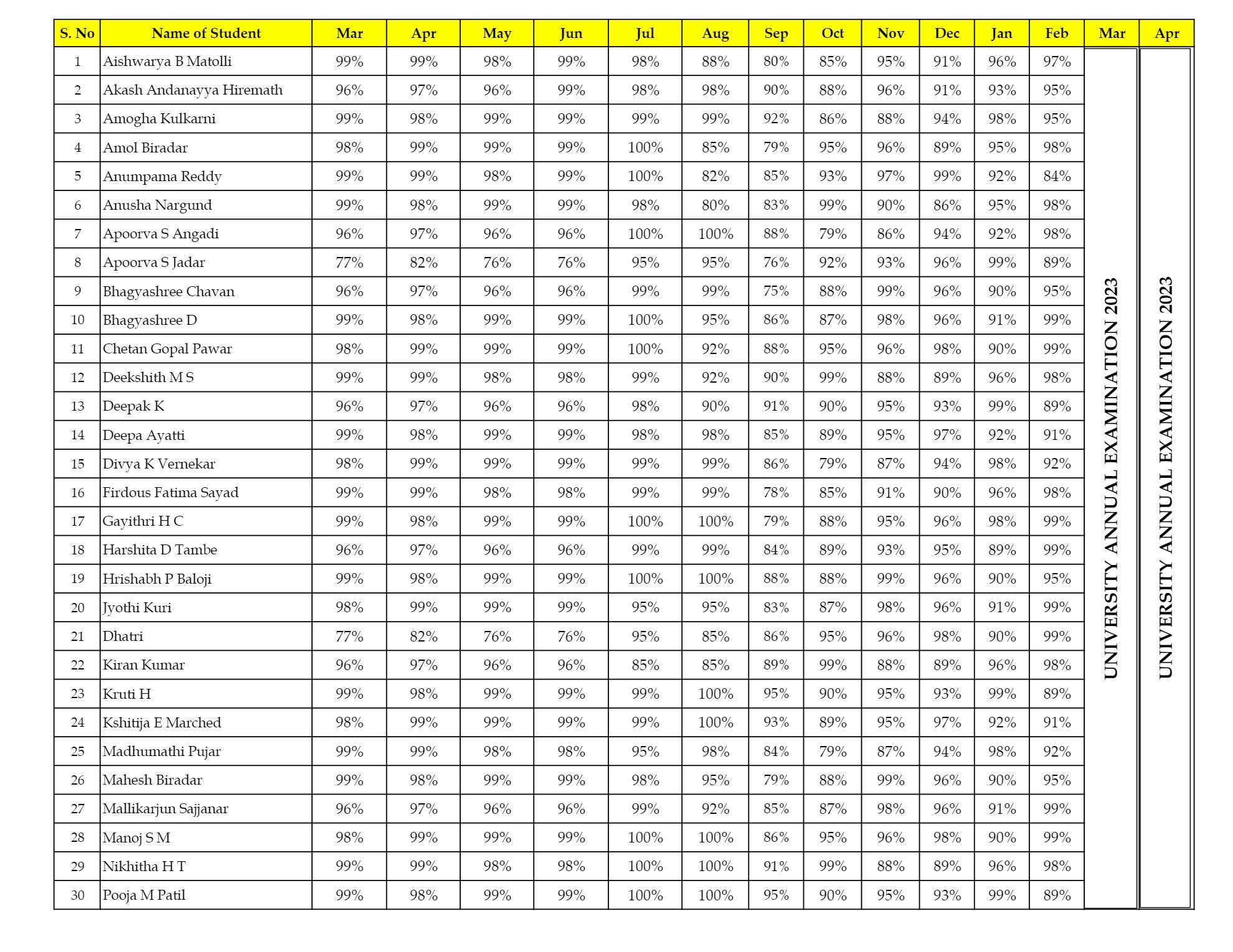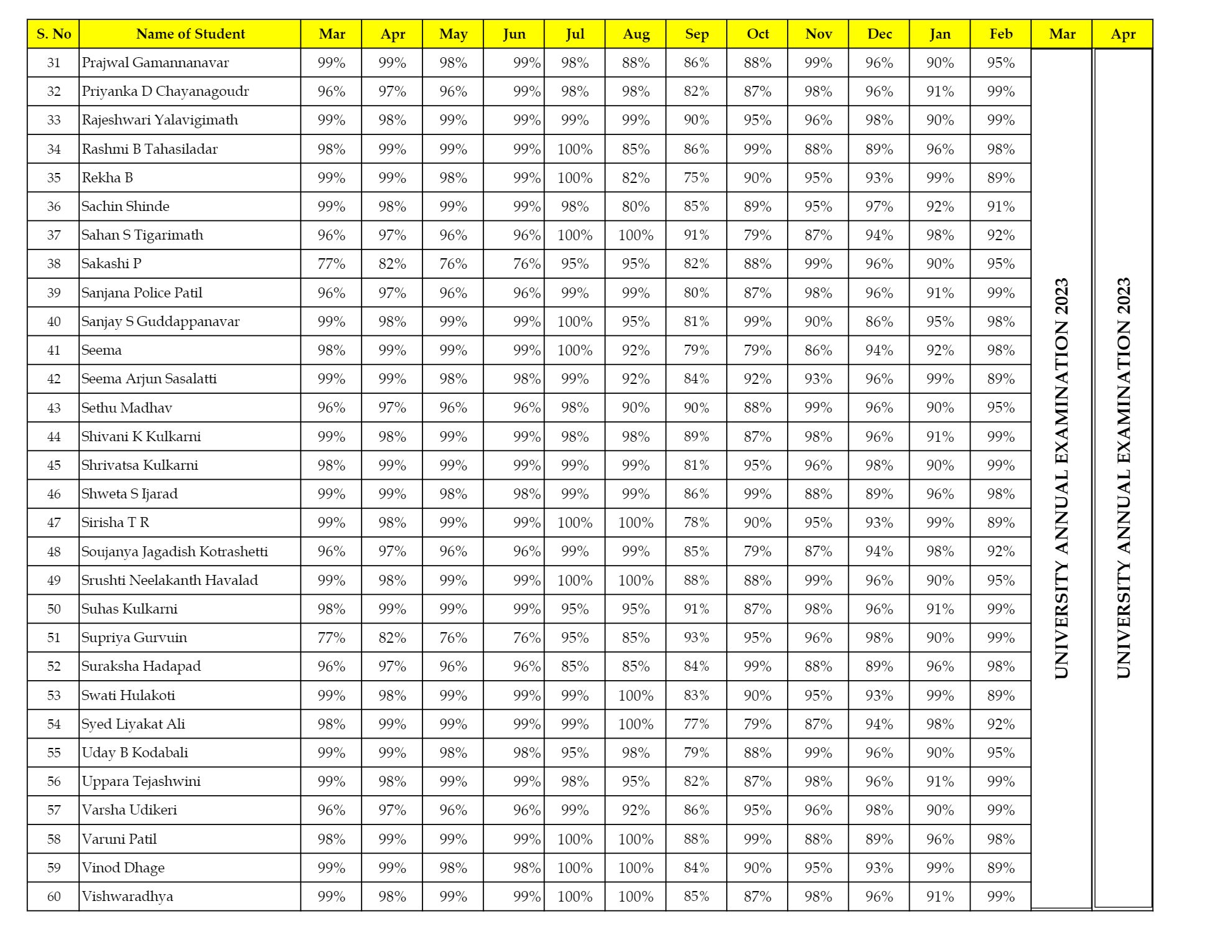 University Examination Results